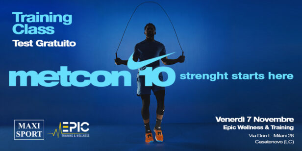 Maxi Sport e Nike, in collaborazione con EPIC Training & Wellnes, ti invitano ad un esclusivo training evento gratuito dedicato alle nuove Nike Metcon 10, pensate per chi non ha paura di spingersi oltre i propri limiti.